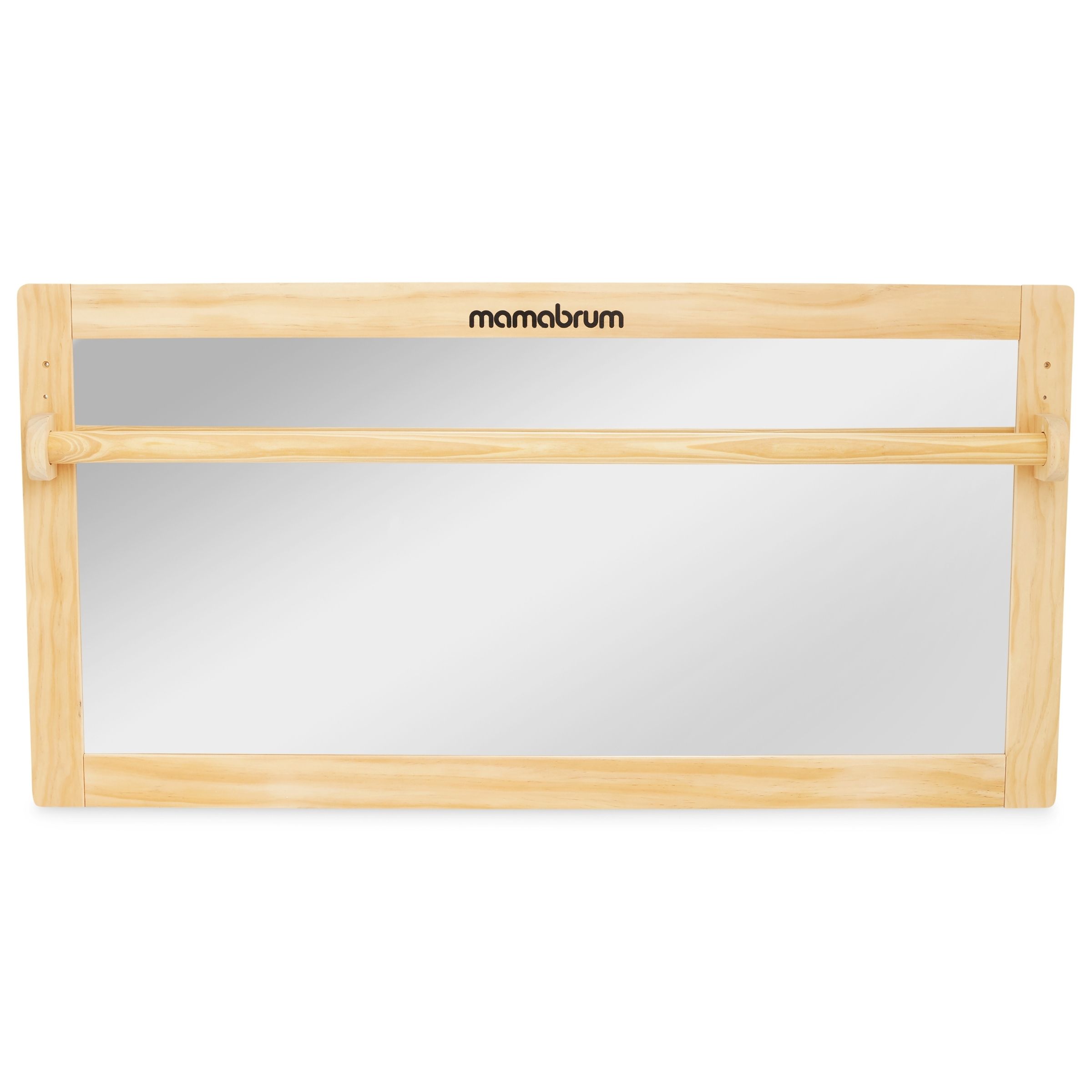 - Stabilné, nerozbitné zrkadlo s dreveným rámom a madlom pre bábätká a malé deti