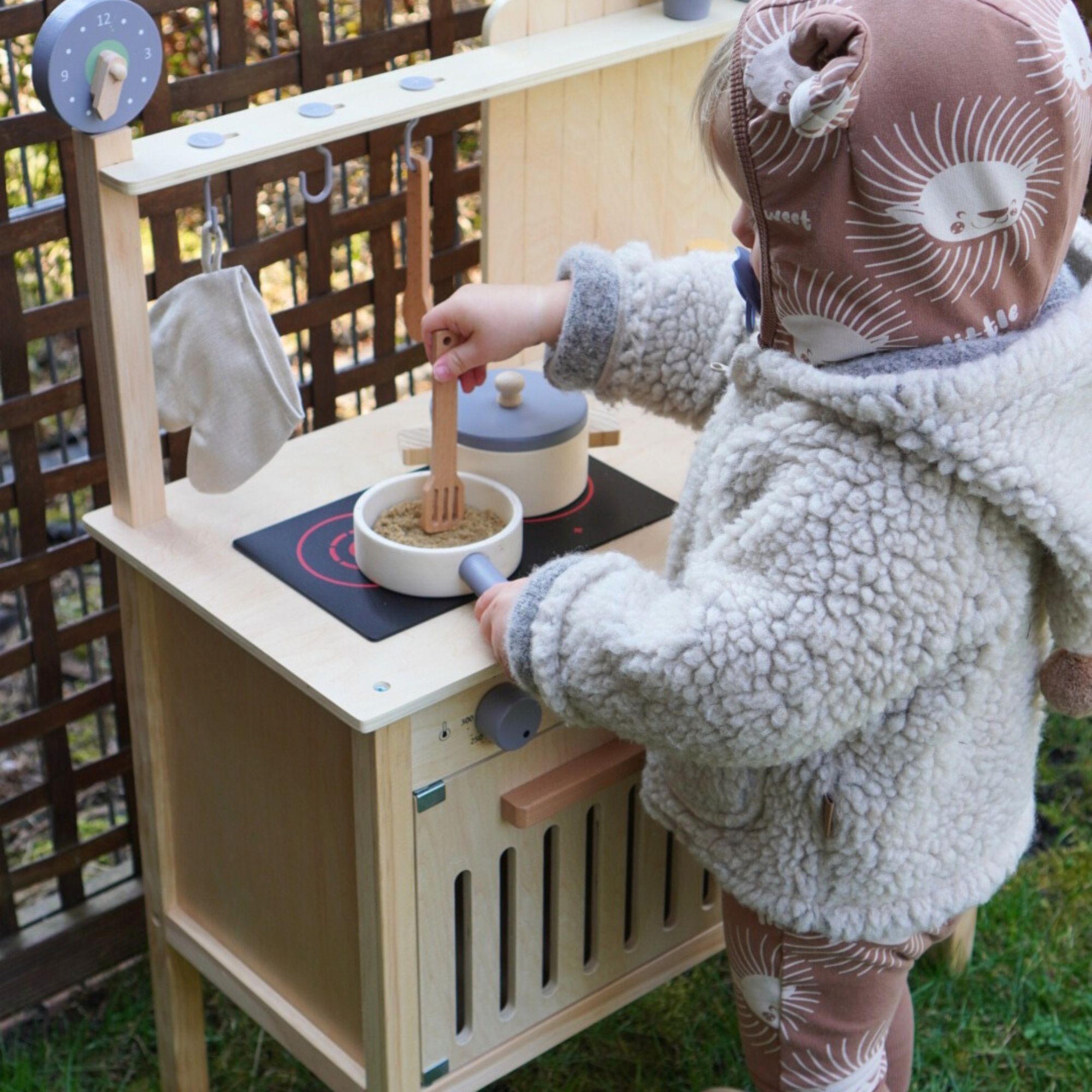 Napodobňovanie dospelých je pre deti fantastická zábava! Drevená kuchynka im umožní prevziať úlohu profesionálneho kuchára alebo mamy či otca, ktorí pripravujú rodinné jedlo. Hračku môžu batoľatá využiť aj na hru na reštauráciu alebo obchod. Dá sa použiť mnohými rôznymi spôsobmi a kreatívna zábava nemá konca kraja!