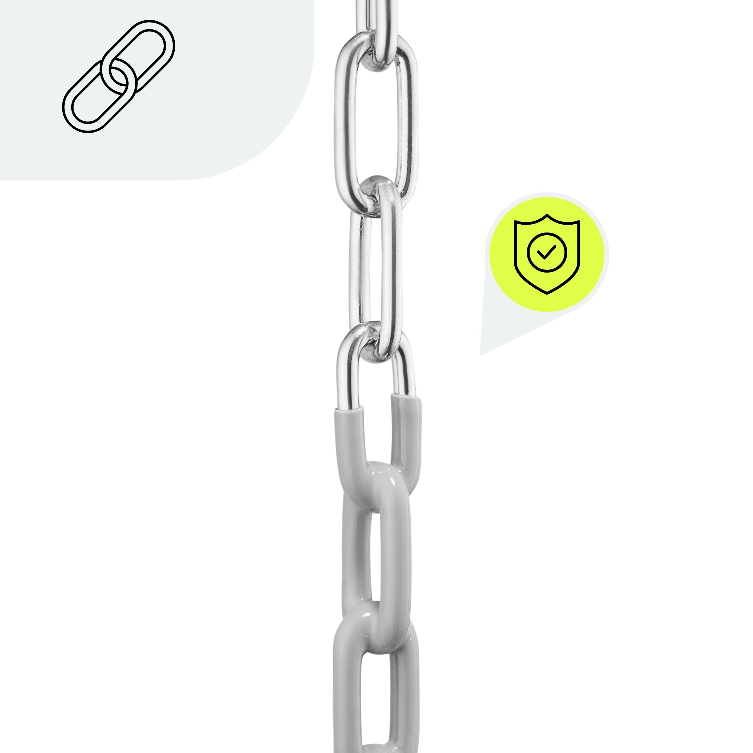 Sedadlo hojdačky je vyrobené z ľahkej a mäkkej, ale odolnej peny EVA, ktorá poskytuje batoľatám vysokú úroveň pohodlia pri hojdaní. Ide o materiál vhodný pre deti, ktorý sa vyznačuje vysokou odolnosťou voči poveternostným podmienkam. Zaoblené hrany sedadla znižujú riziko poranenia alebo bolestivých nárazov. Na druhej strane sú reťaze okrem vrstvy zinku pokryté dvojitým plastovým poťahom, vďaka ktorému sú pružné a zaručujú pohodlné uchopenie.