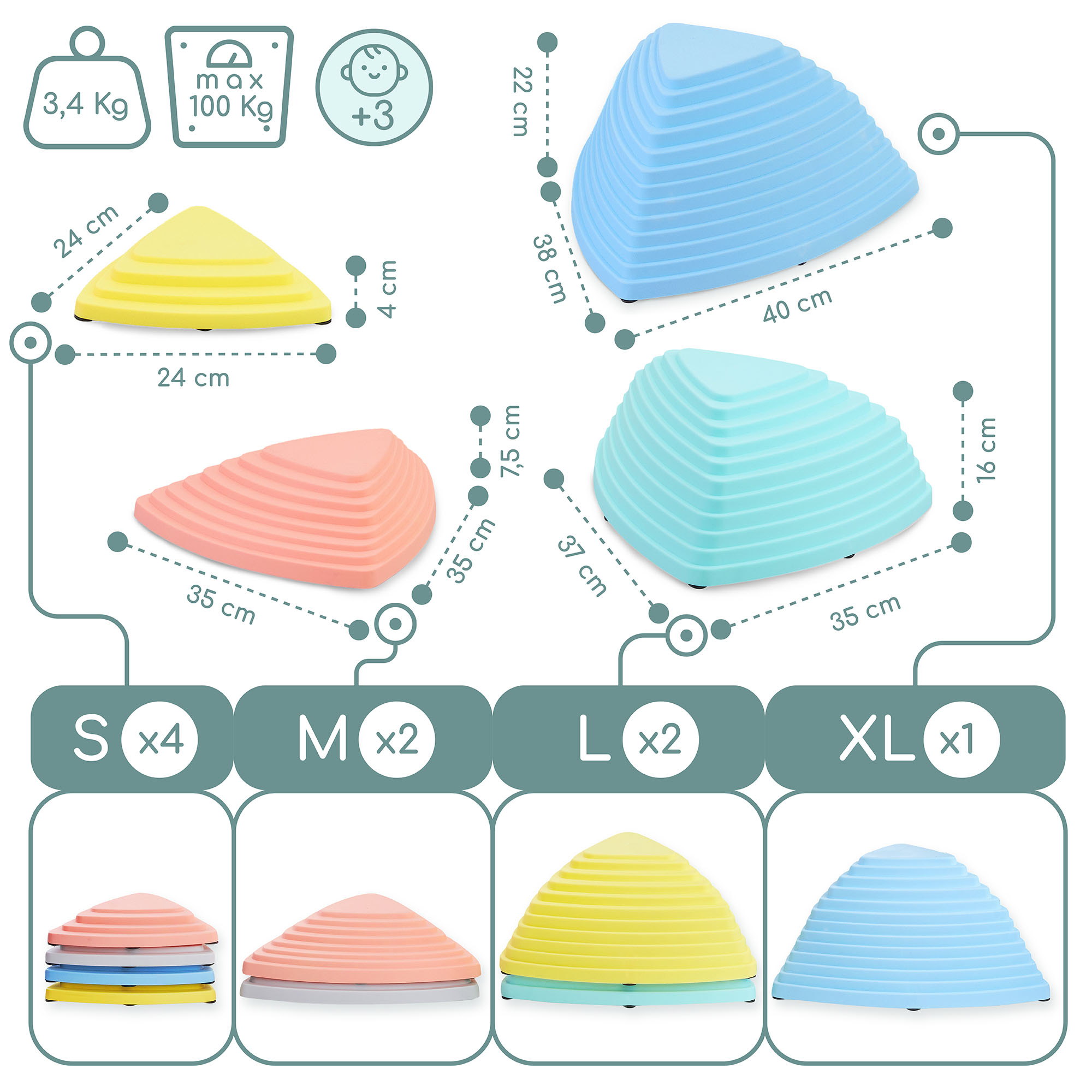 Sada balančných kameňov obsahuje 9 kusov rôznych veľkostí a farieb. Jednoducho ich rozložte v určitej vzdialenosti od seba a poskytnite tak svojmu batoľaťu pútavú zábavu. Balansovanie na po sebe idúcich kameňoch je výborným tréningom rovnováhy a precvičuje motorickú koordináciu. Súprava je výbornou voľbou nielen do domácnosti, ale aj do detskej izby alebo rehabilitačnej miestnosti.