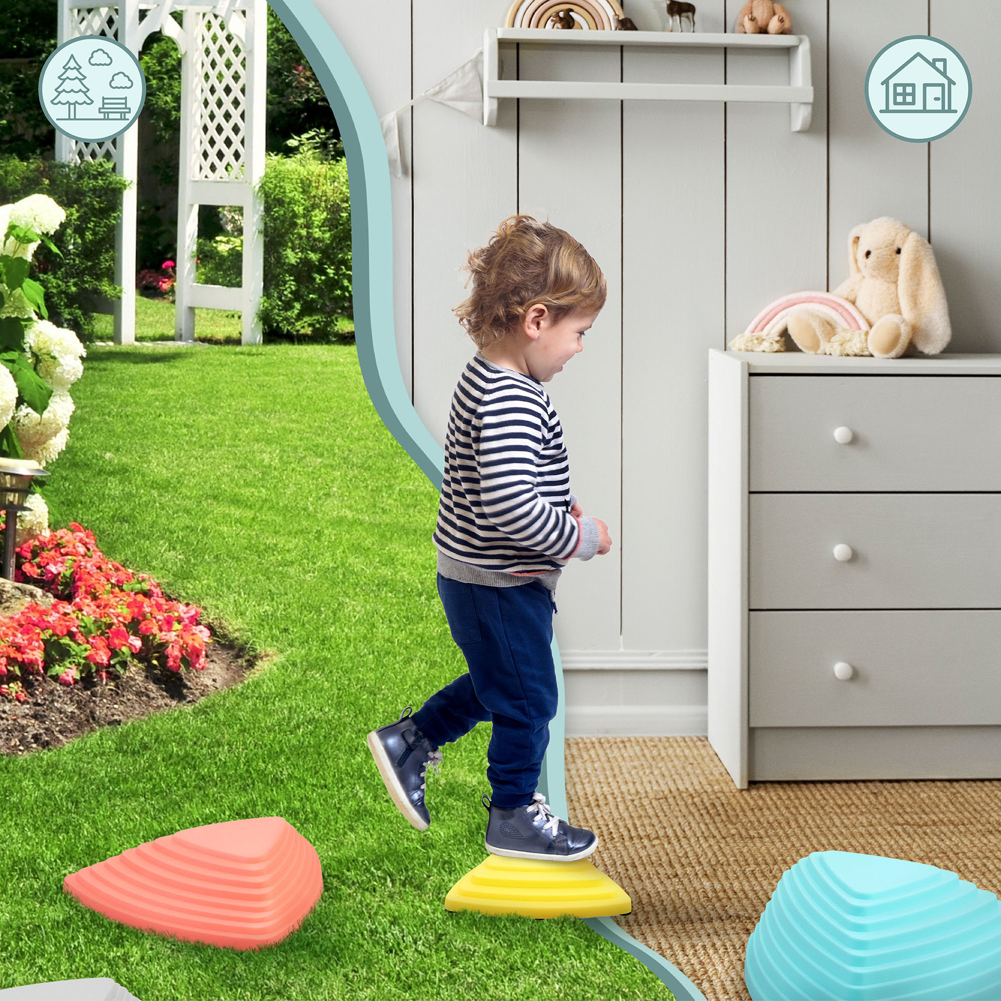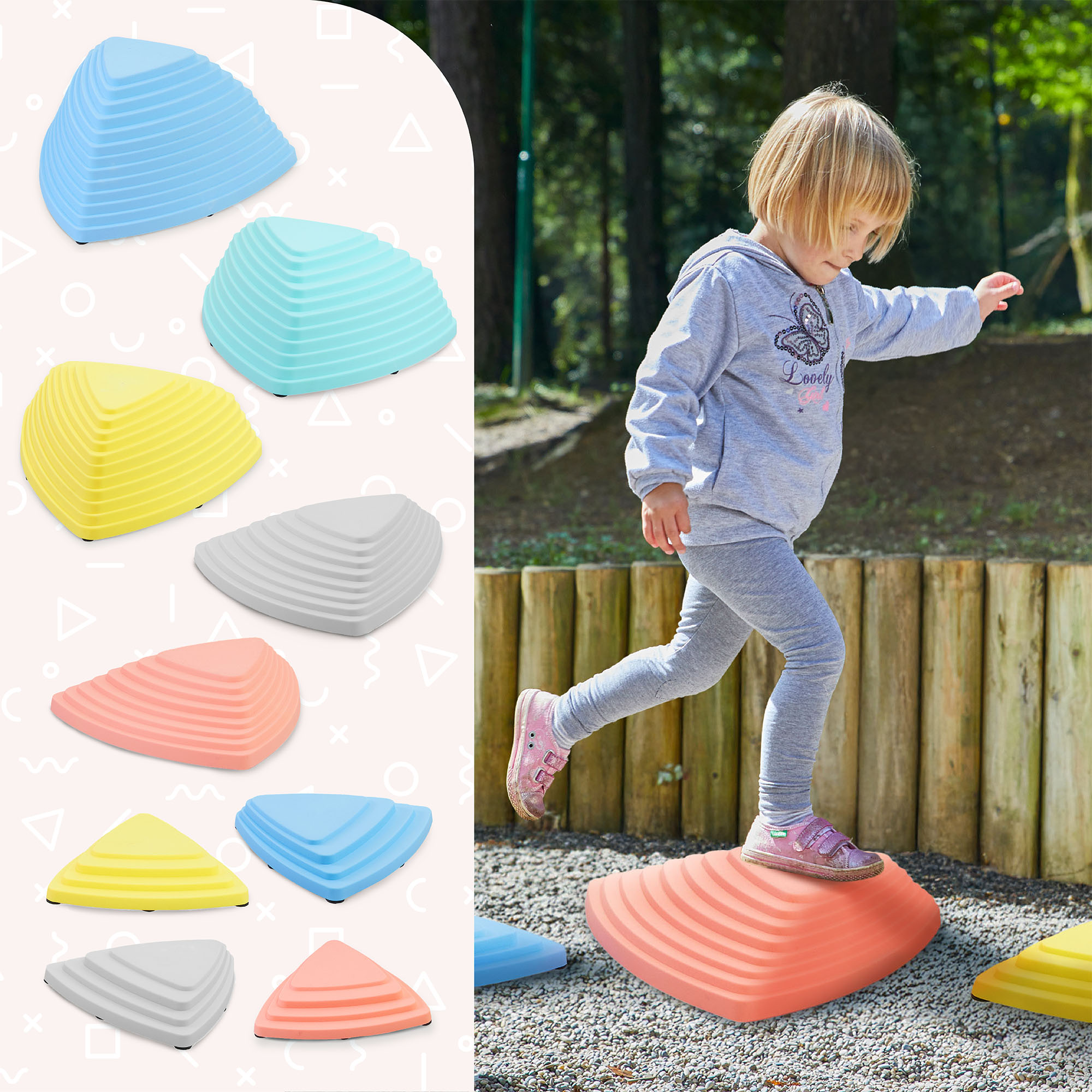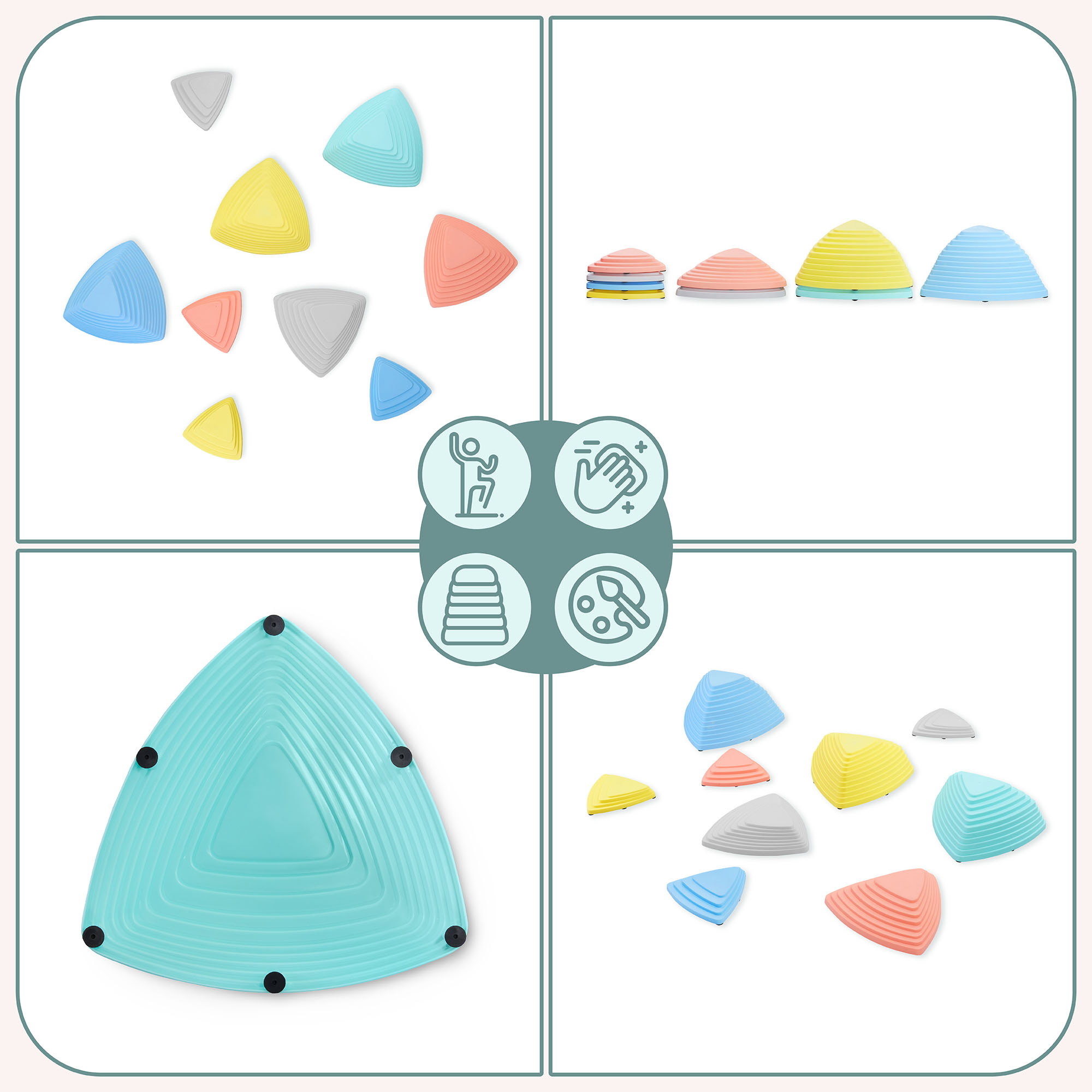 Protišmykový povrch senzorických kameňov zabraňuje bolestivým pádom detí a poskytuje ich nohám vynikajúcu priľnavosť. Vďaka odolnému a zároveň ľahkému plastu je súprava ideálna na hru a cvičenie rovnováhy najmenších, pričom bezpečným spôsobom podporuje ich motorický rozvoj.