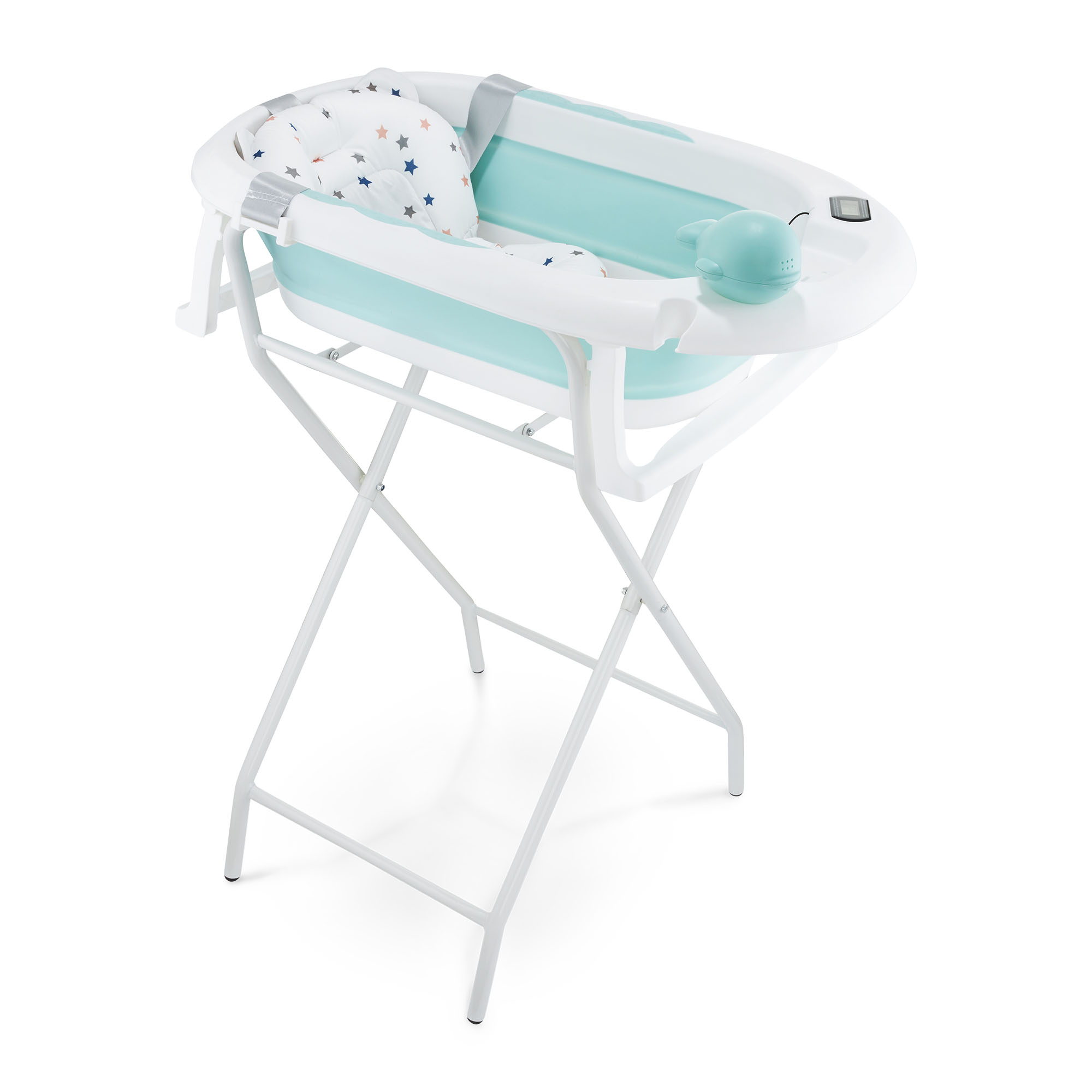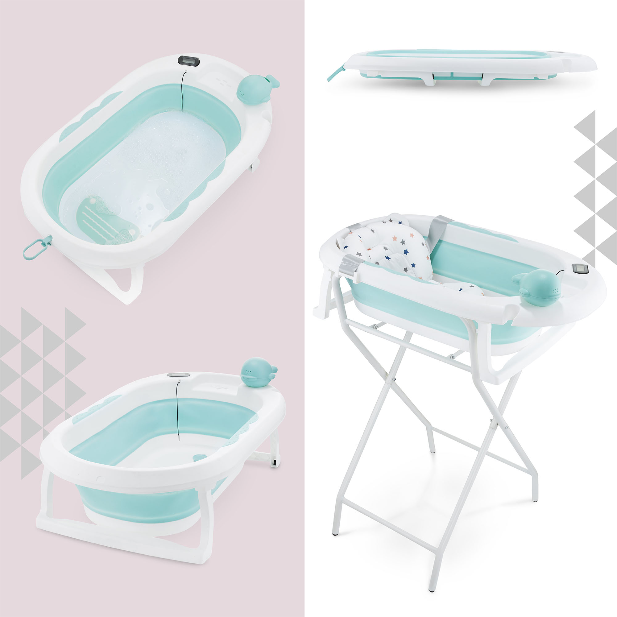 Skladacia detská vanička s teplomerom, vložkou a stojanom - mätová farba