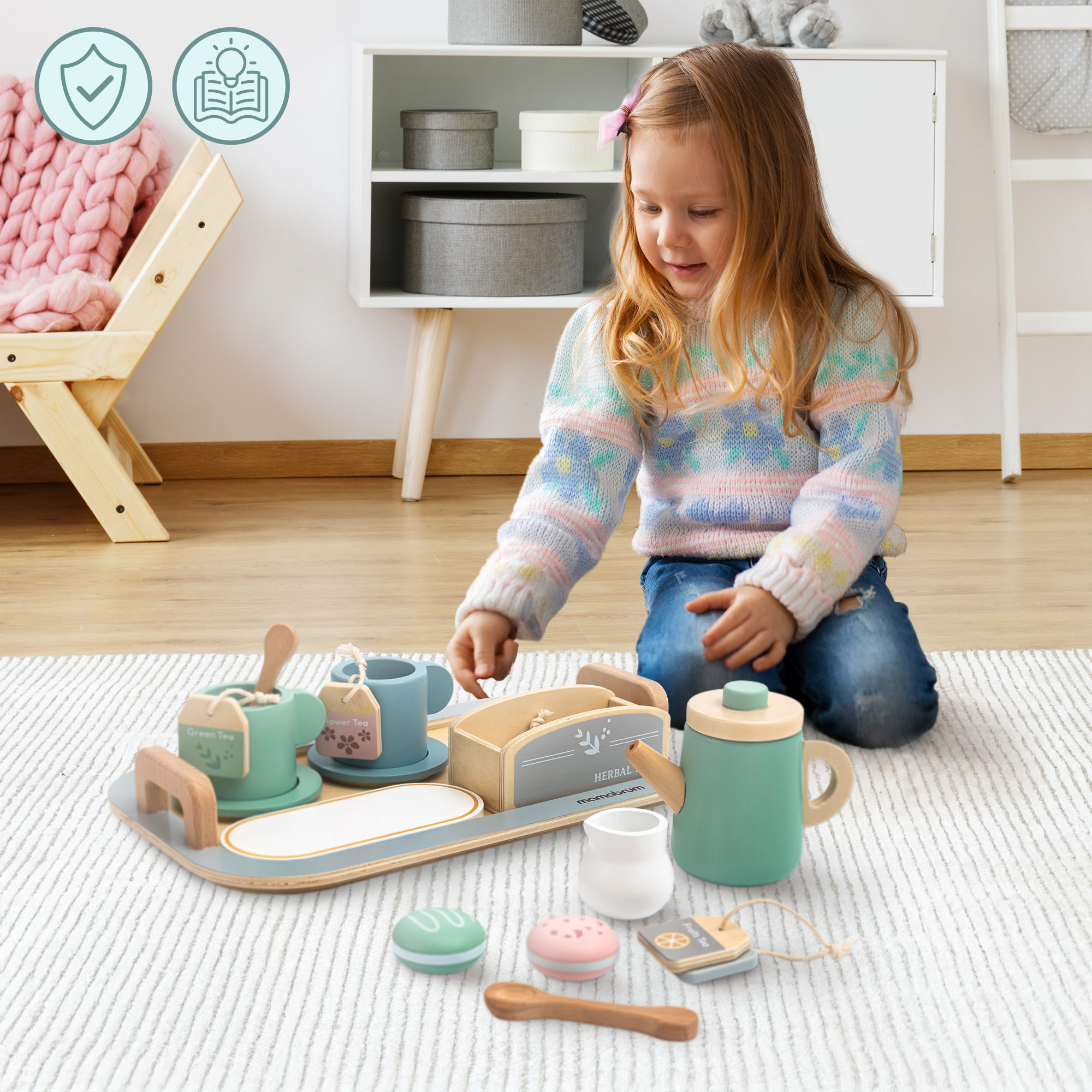 Táto súprava bola vytvorená pre deti, ktoré rady vytvárajú vlastné scenáre. Varenie čaju, aranžovanie šálok a vymýšľanie príbehov premení každú hru na malé dobrodružstvo.