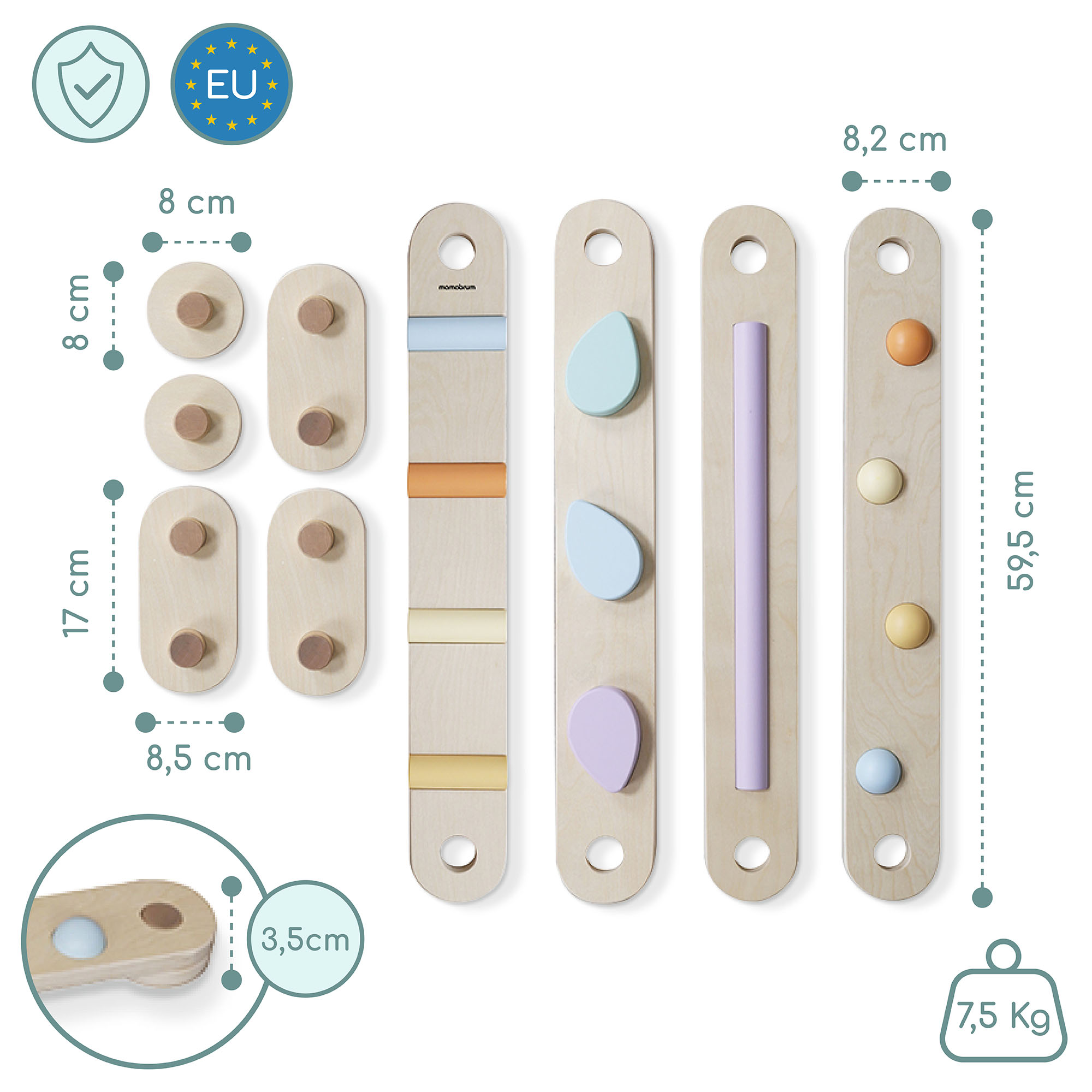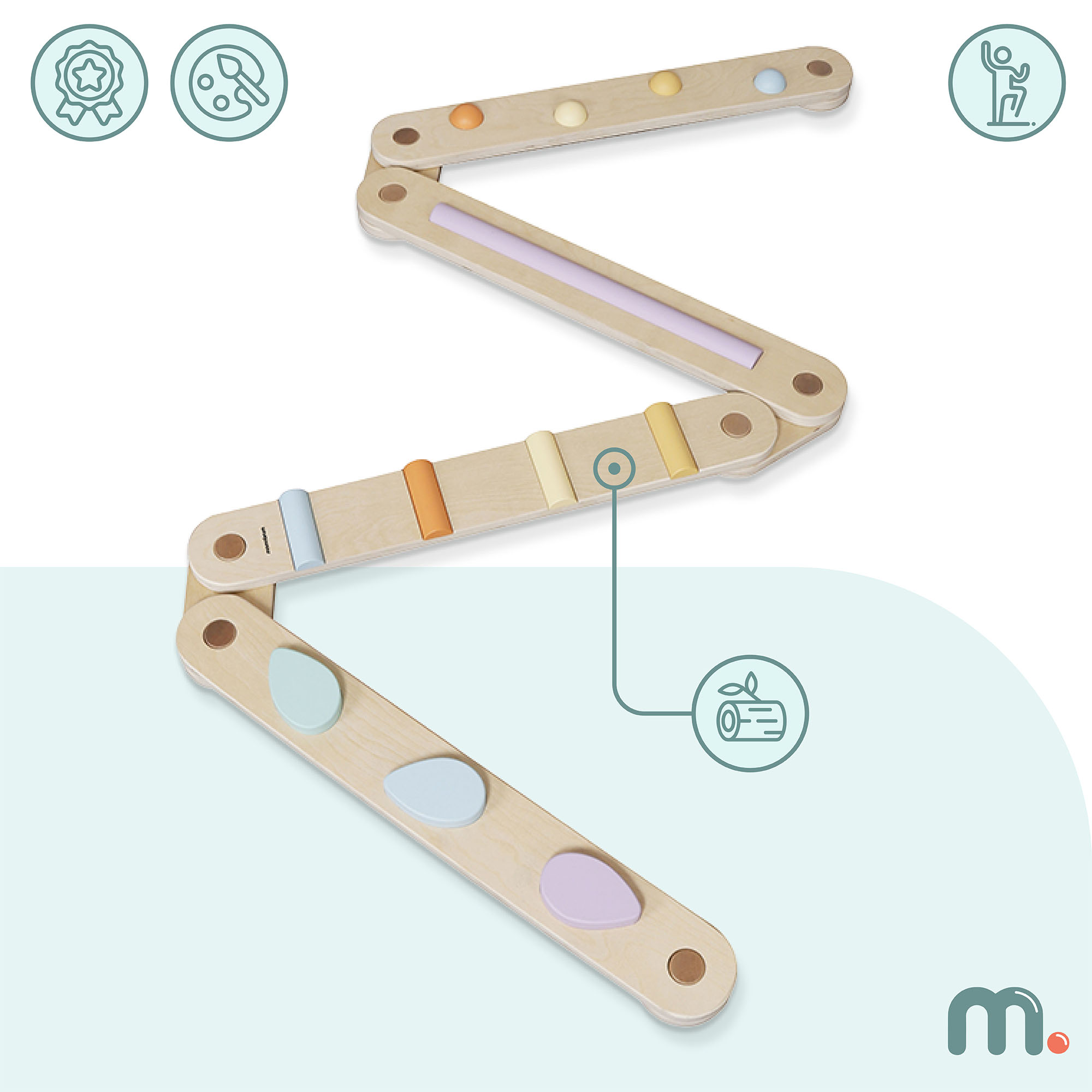 Drevená senzorická dráha je jedinečná hračka, ktorá premení každý interiér na priestor plný pohybu, zábavy a učenia. Vďaka možnosti usporiadania do rôznych tvarov - štvorcová, kľukatá alebo otvorená dráha - získa dieťa nekonečné možnosti hry a zároveň rozvíja rovnováhu, koordináciu a predstavivosť. Farebné zmyslové prvky v zaujímavých tvaroch ďalej stimulujú zmysly a podporujú aktívnu hru.