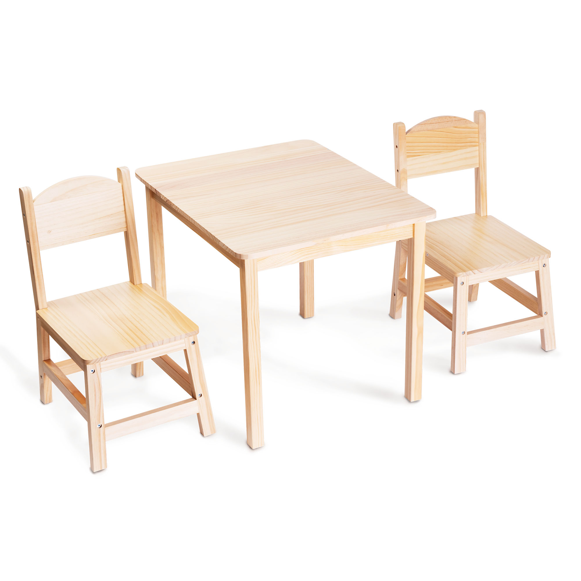 Najväčšou výhodou súpravy je jej jednoduchý, minimalistický dizajn v kombinácii s prírodnou farbou borovicového dreva. Táto harmónia robí zo stola a stoličiek nielen praktický nábytok pre deti, ale aj esteticky príjemný prvok interiérového dizajnu . Prírodné drevo prináša do miestnosti teplo a útulnosť a zároveň zdôrazňuje nadčasový charakter súpravy. Táto kombinácia elegancie a prirodzenosti má svoje čaro v minimalistickej forme a univerzálnej príťažlivosti.