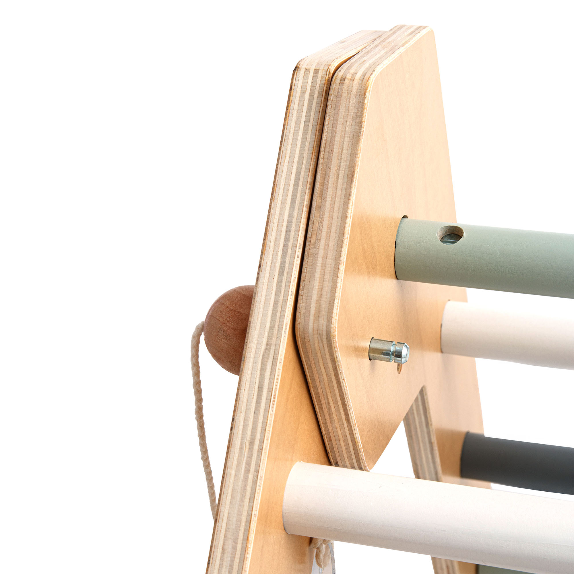 Stabilná konštrukcia umožňuje lezenie, udržiavanie rovnováhy a rozvoj svalov celého tela. Skladacie boky uľahčujú skladovanie alebo prepravu trojuholníka, čo ocenia rodičia s obmedzeným priestorom. Ide o klasický prvok Montessori metódy, ktorý podporuje motorický vývoj a samostatnosť dieťaťa.