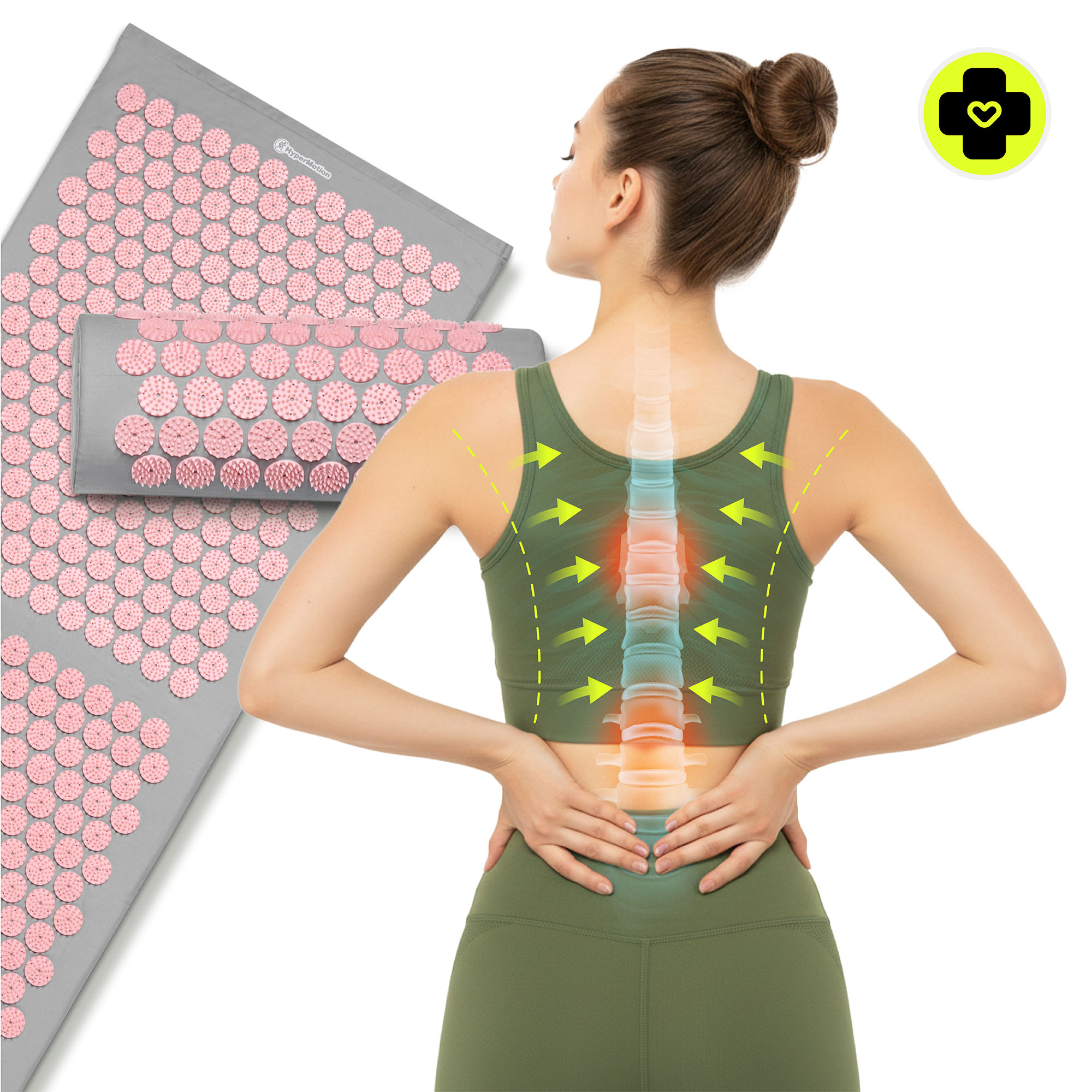 Akupresúrna podložka HyperMotion kombinuje tradičné čínske akupresúrne techniky s moderným dizajnom a vysoko kvalitným spracovaním. Je určená na relaxáciu a regeneráciu, pomáha upokojiť telo, oddýchnuť si po náročnom dni a znovu získať pocit pohodlia. Je to kompletná relaxačná zóna – podložka, ergonomický vankúš a praktický poťah vytvárajú súpravu ideálnu na domáce relaxačné rituály a denný reset.