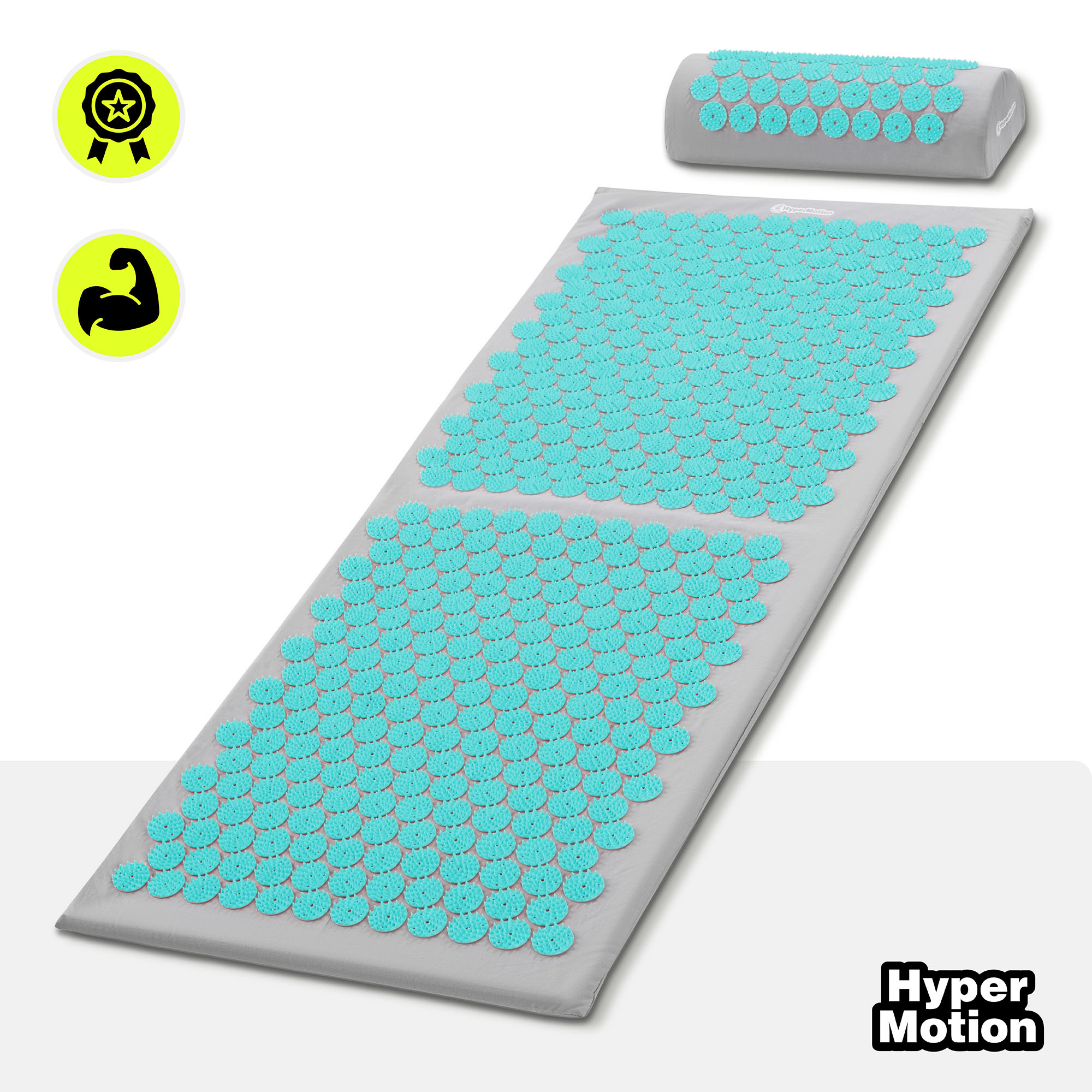 Veľká akupresúrna podložka s vankúšom a poťahom - 130 cm HyperMotion sivo-mätová
