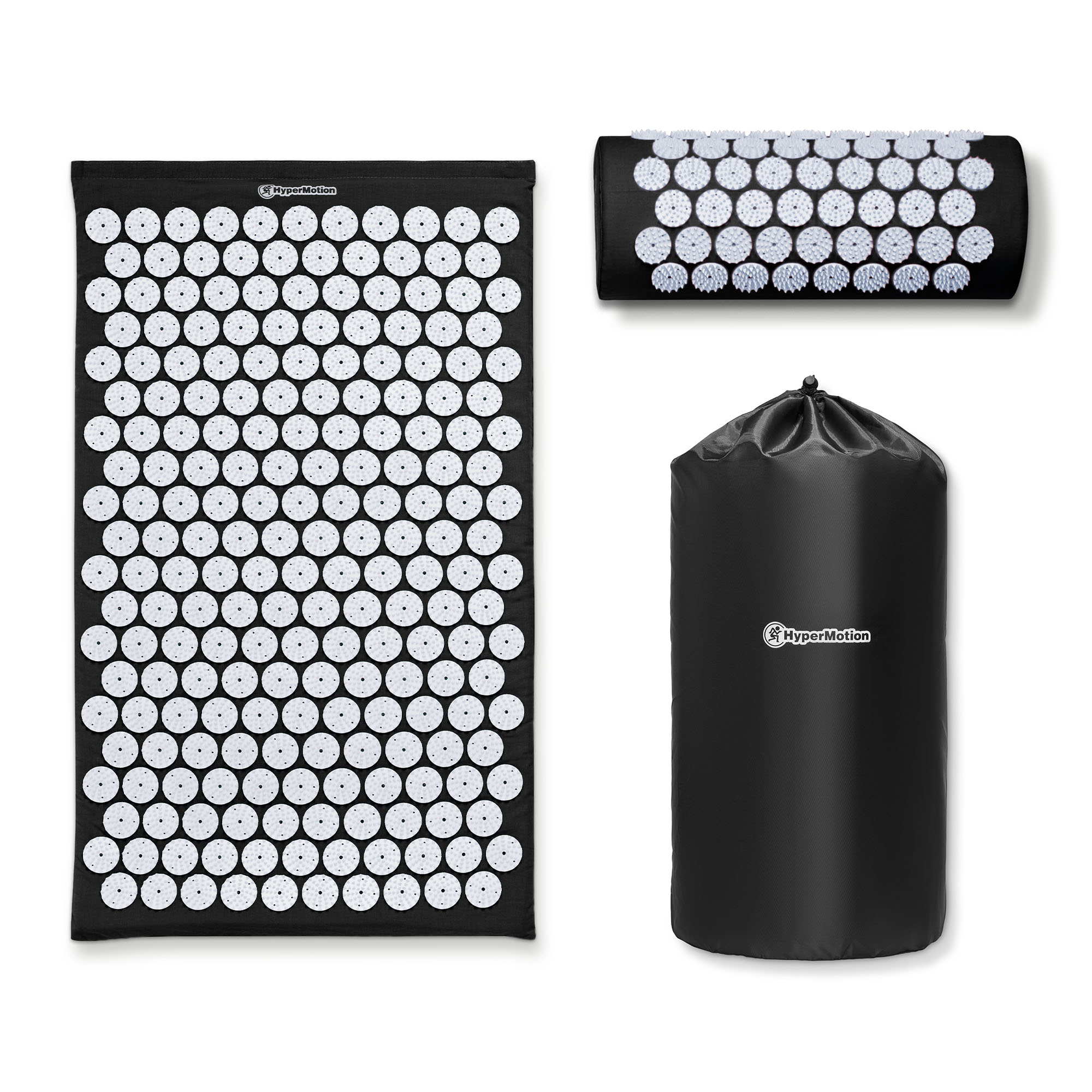 Akupresúrna podložka s vankúšom a poťahom - 72 cm HyperMotion čiernobiela