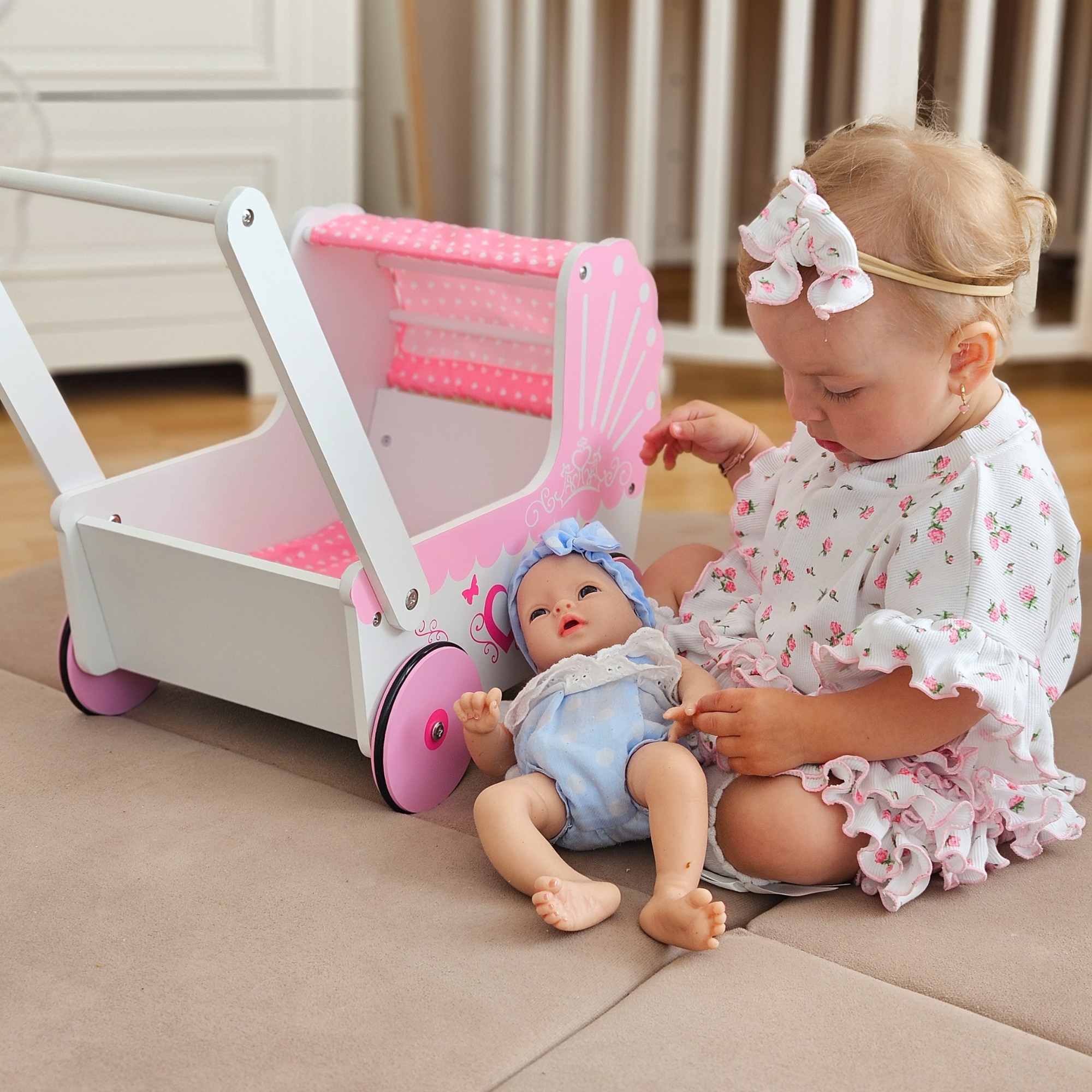 Teraz ich môže vziať so sebou na spacer v tomto rozkošnom kočíku. S takýmto kočíkom sa každá malá princezná premení na starostlivú mamičku, ktorá sa stará o svoje obľúbené bábiky.