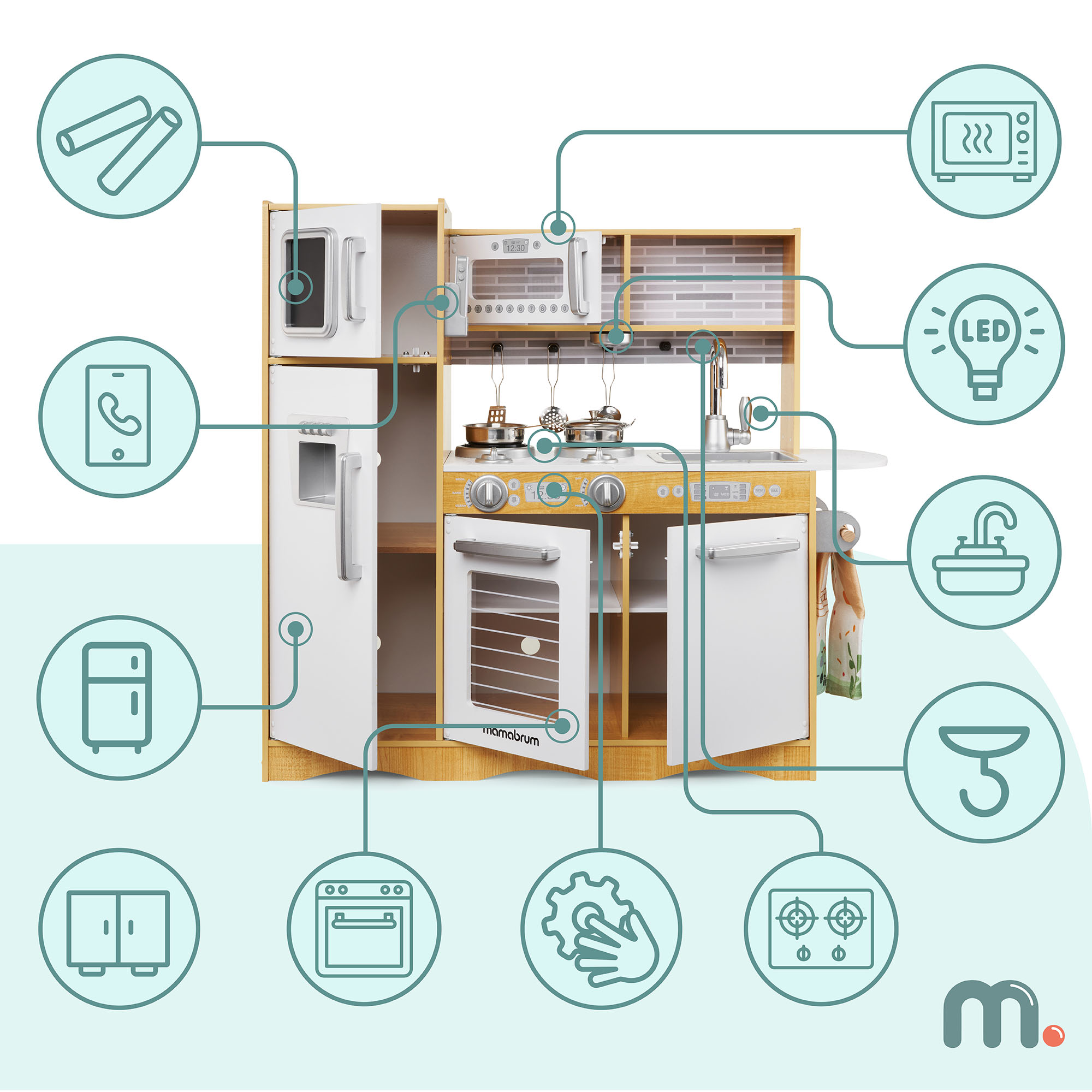 Drevená kuchyňa XXL s LED osvetlením, zásterou a príslušenstvom