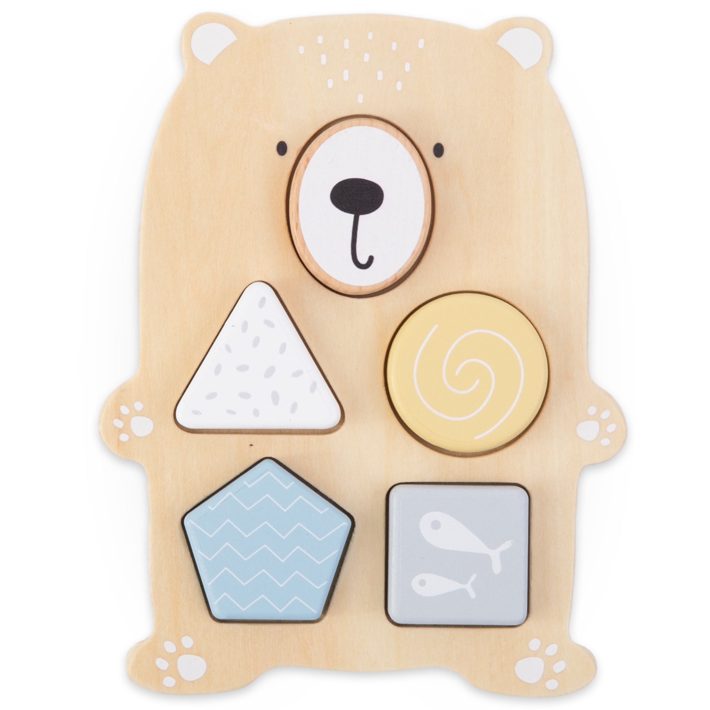 Táto mini súprava drevených hračiek je fantastický darček pre každé batoľa! Motorická slučka s farebnými korálkami poskytuje výborné cvičenie pre malé detské prstíky. Drevený triedič v tvare medvedíka podporí poznávanie tvarov a drevená pyramída naučí rozlišovať veľkosti a zároveň poskytne batoľatám veľa zábavy!